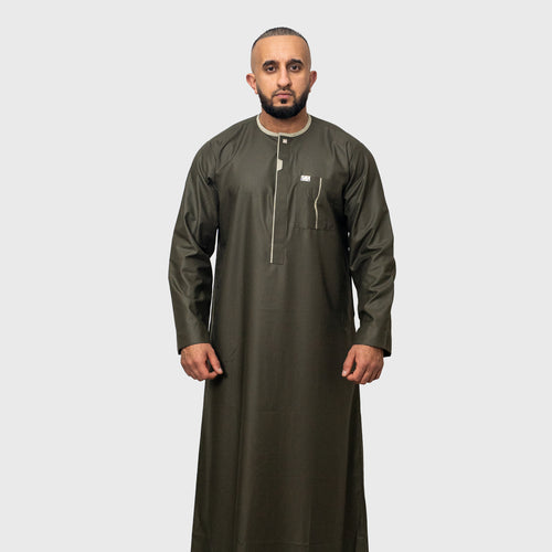 Luxury Buttoned Classic Khaki ZA Emirati Thobe